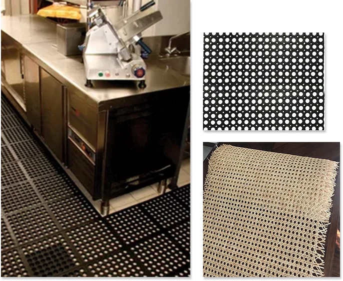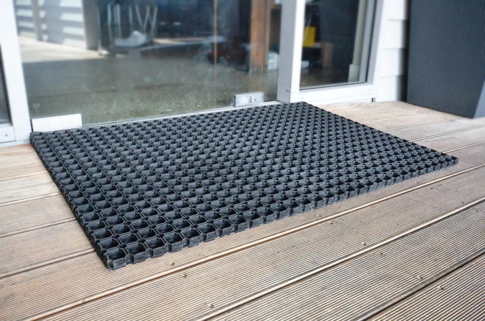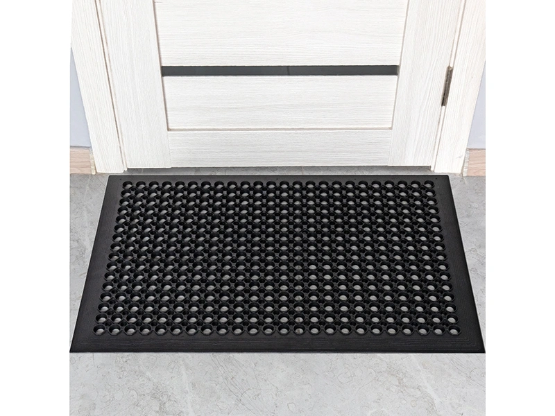 Hollow mats are used for anti-slip as well as for drainage, which reduces the risk of falls. They are also used for debris management, as the mud and dirt can fall through the holes. The rubber provides comfort to your feet and legs.