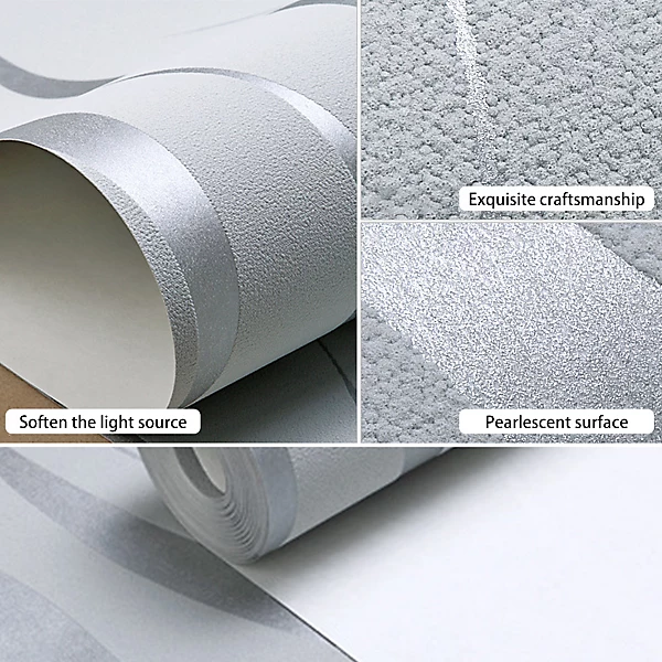 Grey Wave Striped Non Woven Embossed Flocking Wallpaper 950 cm