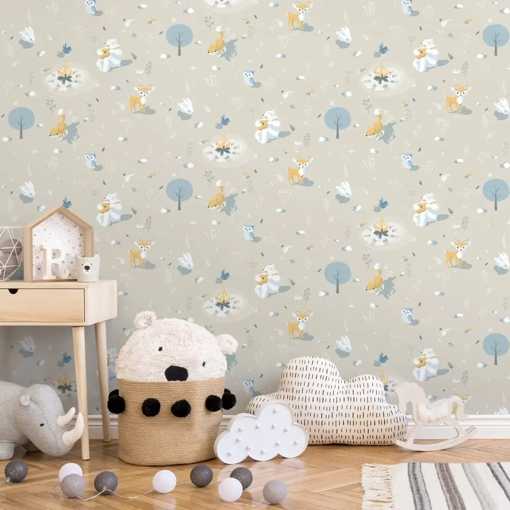 Muriva Animals Campfire Fox Rabbit Bird Bear Wallpaper Kids