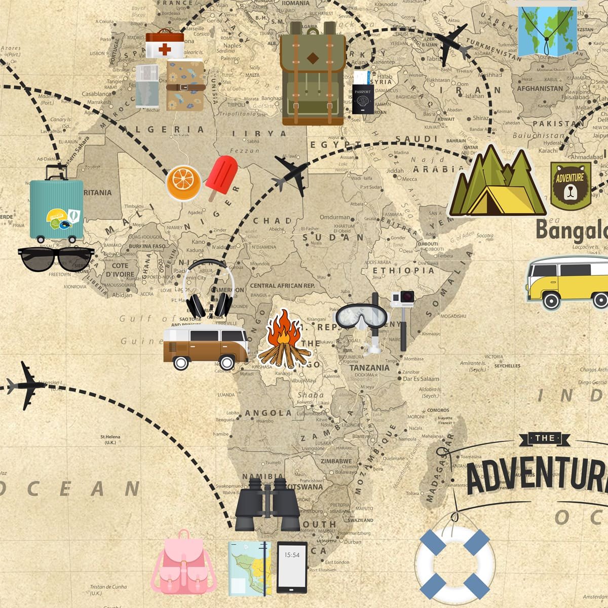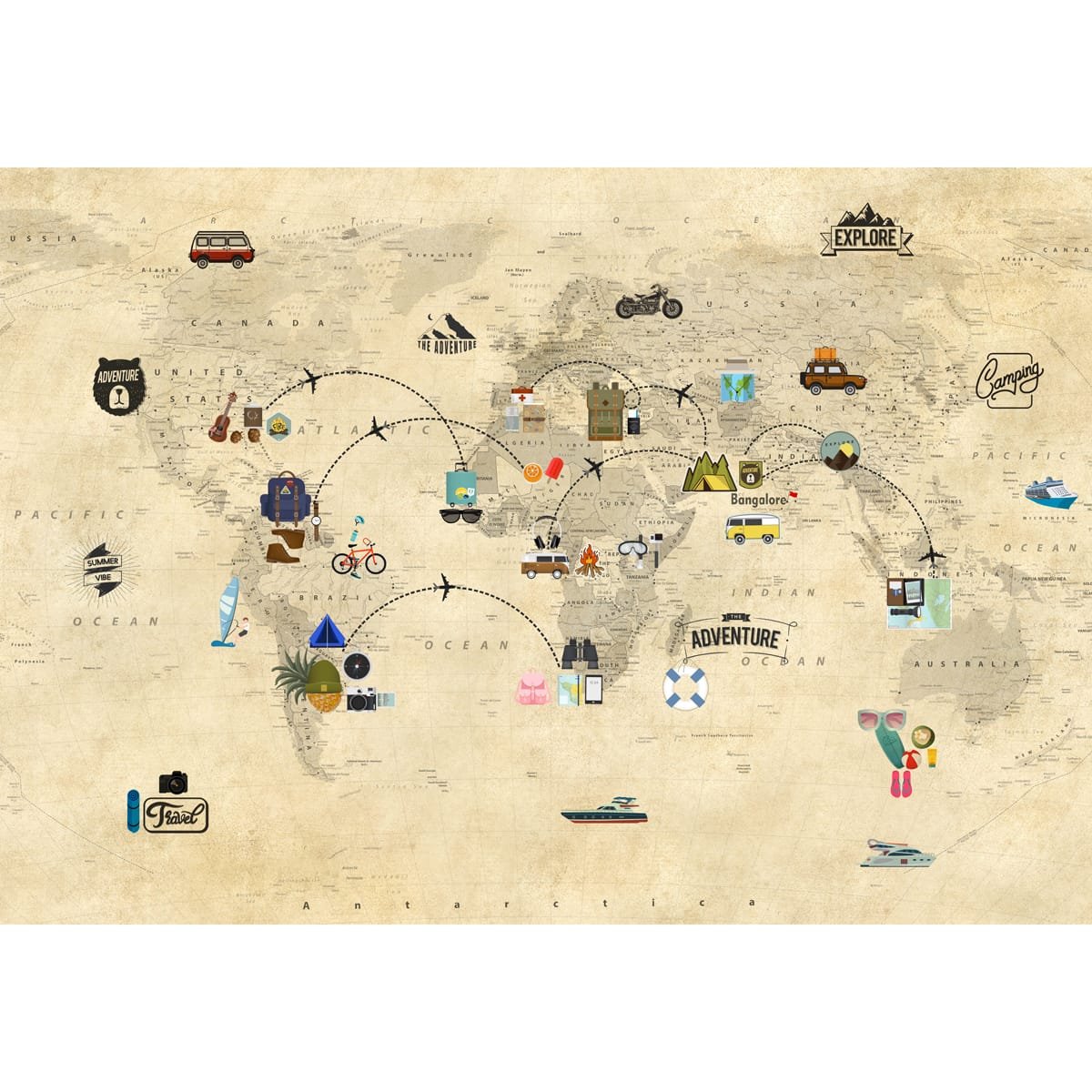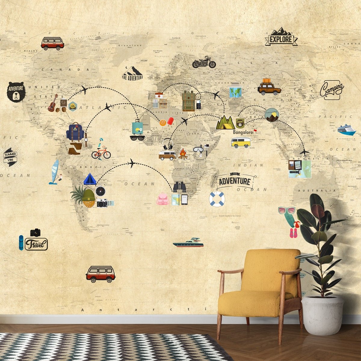 Travel Theme World Map for Kids Rooms