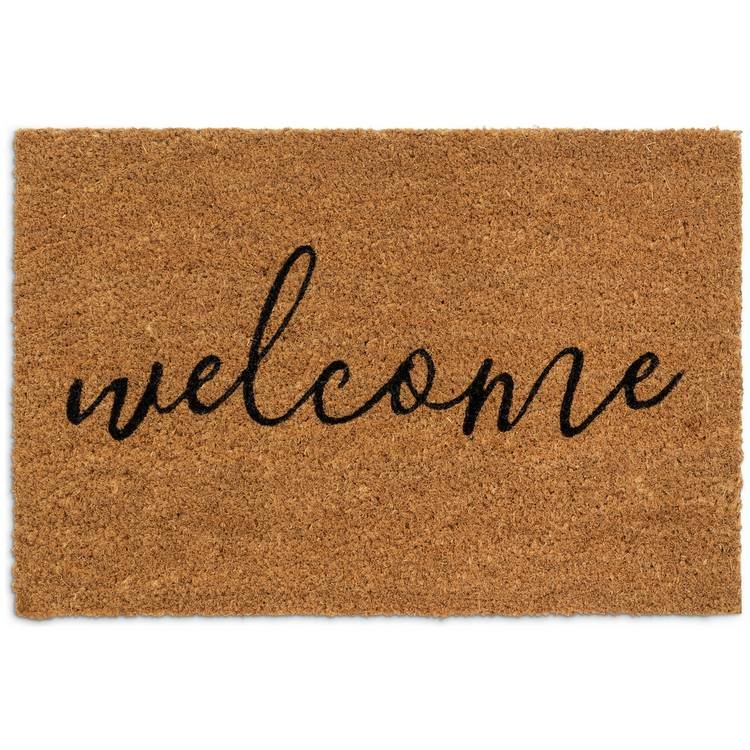 Welcome Natural & Black Short Pile Doormat – 60x40cm