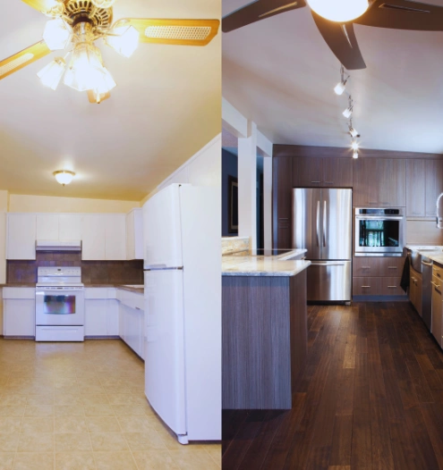 We offer the most innovative and reliable renovations to upgrade your kitchen spaces. Our kitchen renovation brings durable finishes and creative designs to your interior spaces. Explore our range of kitchen remodeling designs and layouts for your villas.